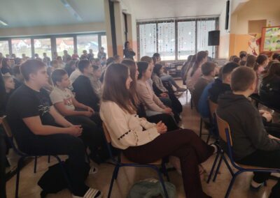Psiholog iz Centar za sigurniji internet na zanimljiv i učenicima blizak način govorio je o izazovima digitalnog svijeta te kako se u njemu snalaziti sigurno i odgovorno. U sklopu programa učenicima su se pridružili i mladi digitalni kreatori koji su s njima podijelili svoja iskustva korištenja društvenih mreža.
