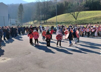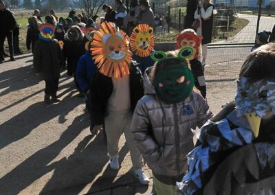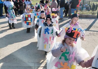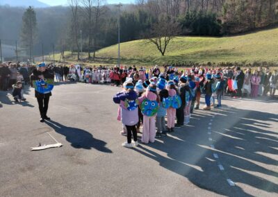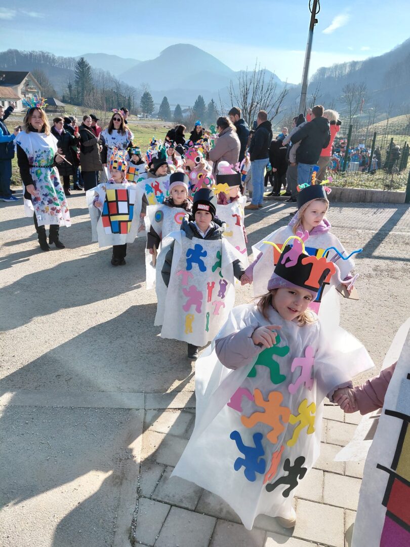 Vesela povorka krenula je od vrtića te se šetnjicom uputila do pruge, a zatim nastavila prema igralištu pokraj škole. Mjesto je na trenutak postalo prava mala pozornica mašte i kreativnosti – šarene maske, razigrani likovi i nasmijana lica privlačili su poglede i širili dobro raspoloženje.